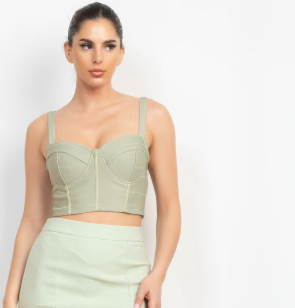 Bustier Crop Top & Front Slit Wide Leg Pants