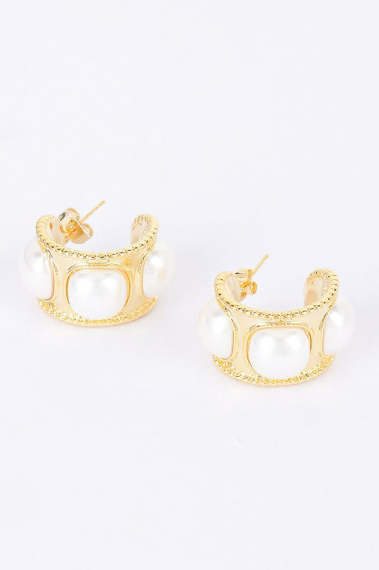 Sold outFaux Pearl Metal Mini Hoop Earring